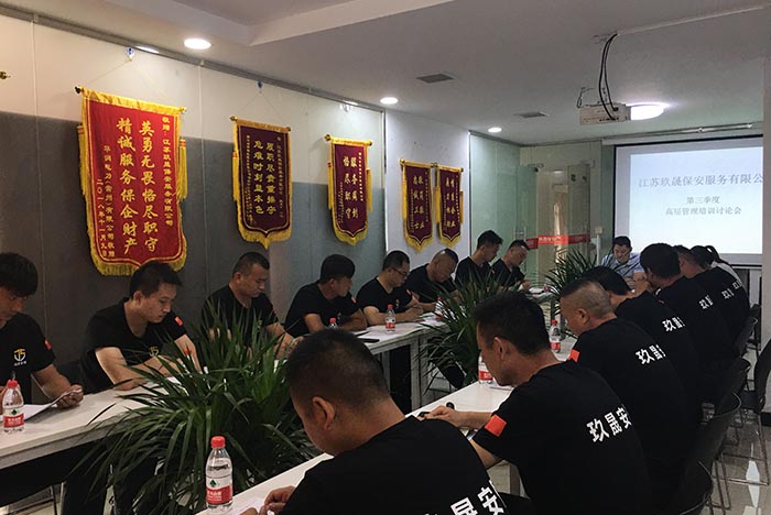 2020年7月29日我公司第三季度例會如期進(jìn)行針對上結(jié)段工作總結(jié)匯報(bào)及下季度的工作安排做了詳細(xì)的分析及部署。另針對保安崗位職責(zé)制度、保安崗位工作標(biāo)準(zhǔn)、保安交接班的相關(guān)規(guī)定及注意事項(xiàng)、儀容儀表的規(guī)定和要求、文明用語的使用等方面,如何有效落地實(shí)施培訓(xùn)計(jì)劃做了詳細(xì)的研討。