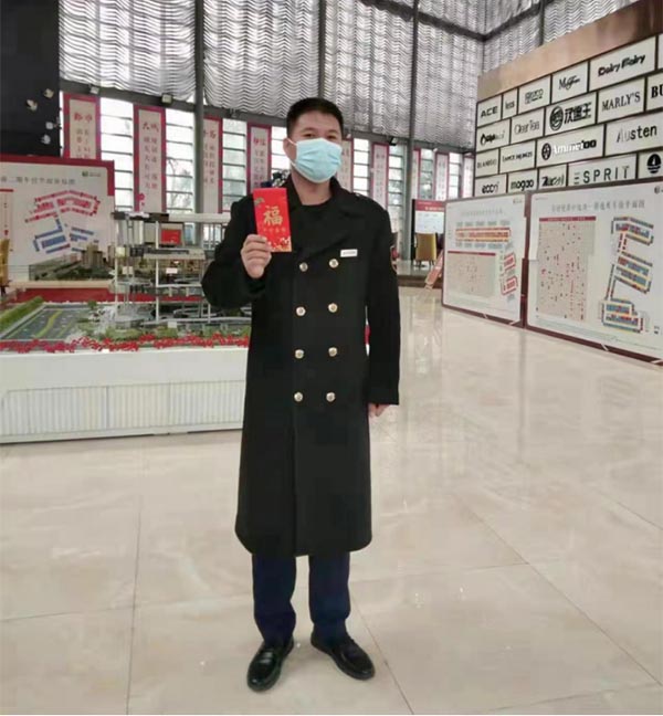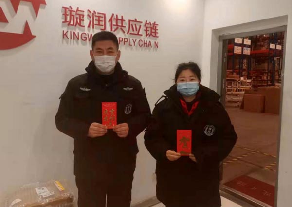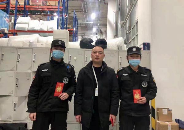 Everywhere he went, Mr. Zhang Hailong sent New Year's red envelopes to the team members, wishing them a happy New Year, good health and a happy family. He emphasized that security guards must strictly abide by the on-duty discipline of security guards, especially the epidemic prevention and control, and strictly follow the documents required by the district committee, district government and service units. Various epidemic prevention measures such as the one-meter safety line must be put in place to ensure that no accidents occur during the festival.