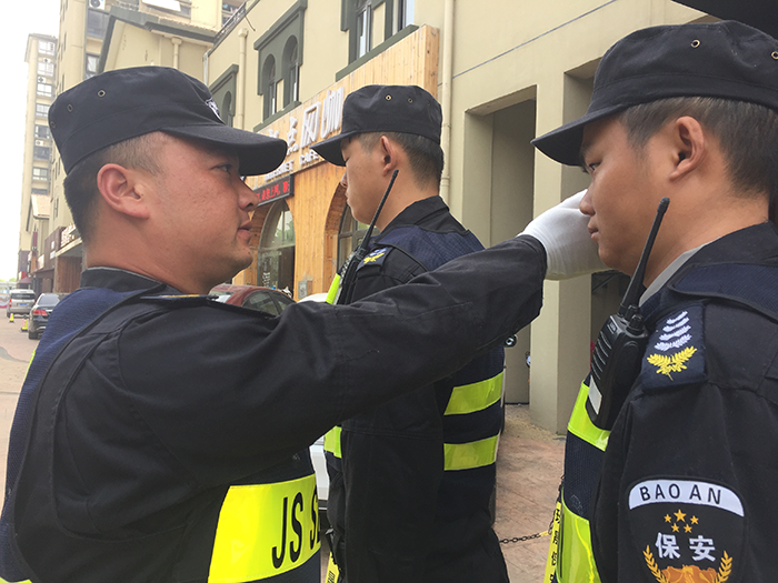 n the early morning, the security guards greet the first rays of sunshine, and take the lead of the project leader to take a firm step and open a brand new day.