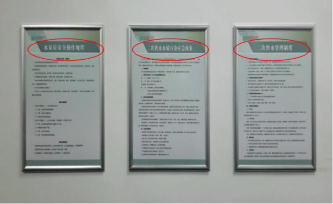 3.上墻文件為二次供水管理制度、應急預案、以及操作規程。
