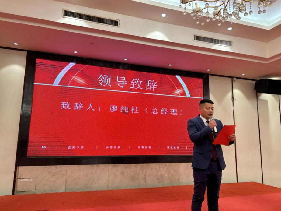 首先,我們迎來了總經理廖總致辭。廖總的發言充滿了激情和感染力,過去的2023年有著太多的不易,他的話語激勵著我們在新的一年中繼續努力拼搏,創造更加輝煌的業績。他強調了玖晟人的使命和責任,為我們指明了前進的方向。