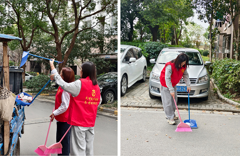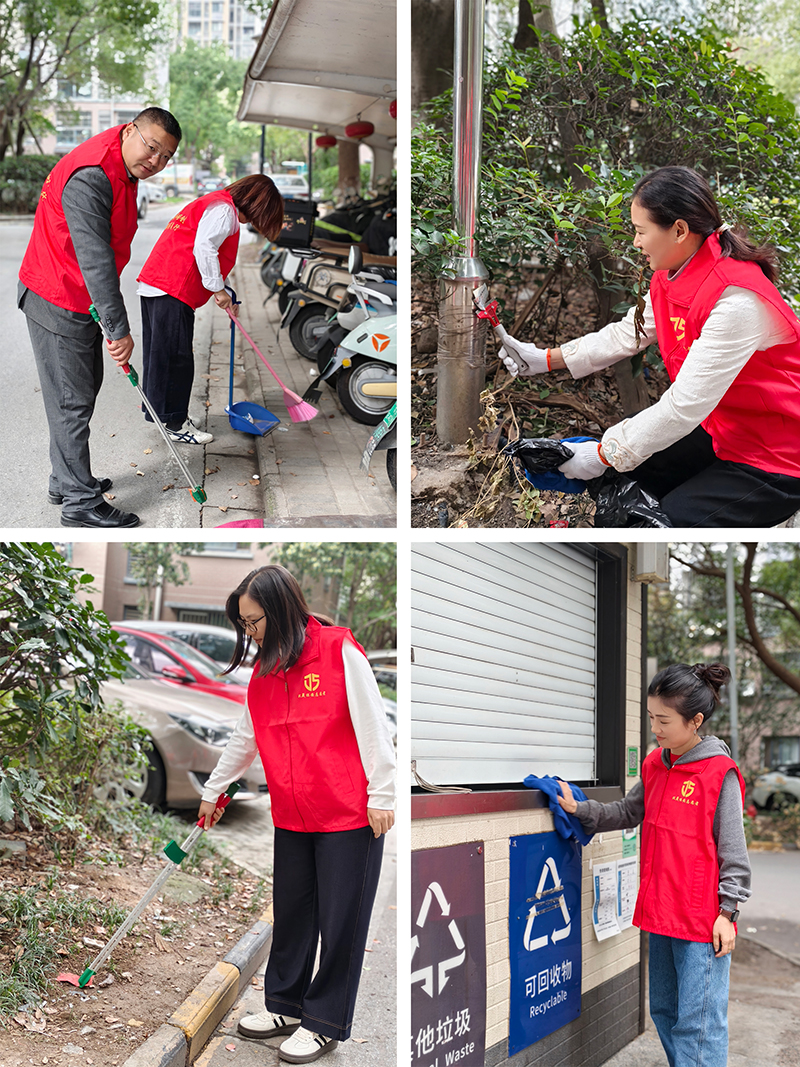活動開展前,我司組織人員與社區網格員充分溝通,精準梳理出樓道堆積物、綠化帶隱藏垃圾、公共區域小廣告等社區常見環境問題。參與員工延續我司安保工作“分工明確、落實到位”的執行特點,分組展開清理:一組集中清除墻面與樓道小廣告;一組細致清理綠化帶內的煙頭、塑料袋等雜物;一組負責清掃路面落葉、擦拭公共設施。從樓梯扶手的清潔維護到垃圾分類與清運,每個環節都細致入微,社區公共區域衛生環境得到顯著改善。