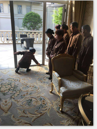 商場的地面清潔是很重要的,為了給顧客更好的購物體驗,我公司要求保潔人員必須時刻保持地面清潔,地面清潔主要檢查硬質地面臺階及其接縫是否潔凈,上蠟是否光亮,地毯是否清潔,有無污點和霉壞,梯腳板墻腳線、地腳線等地方有無積塵、雜物、污漬,廣場磚、車庫地面是否干凈,花基、花壇內是否有煙頭、雜物,綠化牌等。